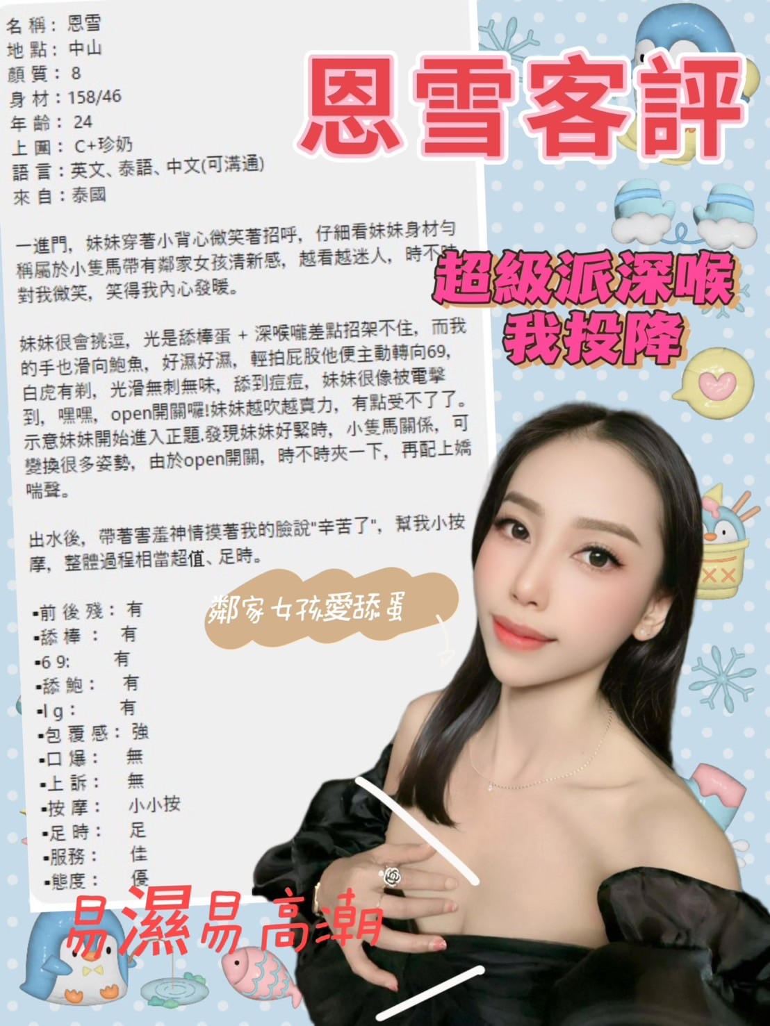 性感豐唇,舌頭靈活,喜歡吹棒棒的享受    Review by 翁**