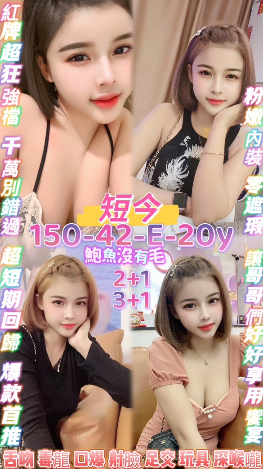無套吹/戴套做/親嘴/品鮑/69/舔蛋/按摩/奶泡/胸推/屁推/深喉嚨