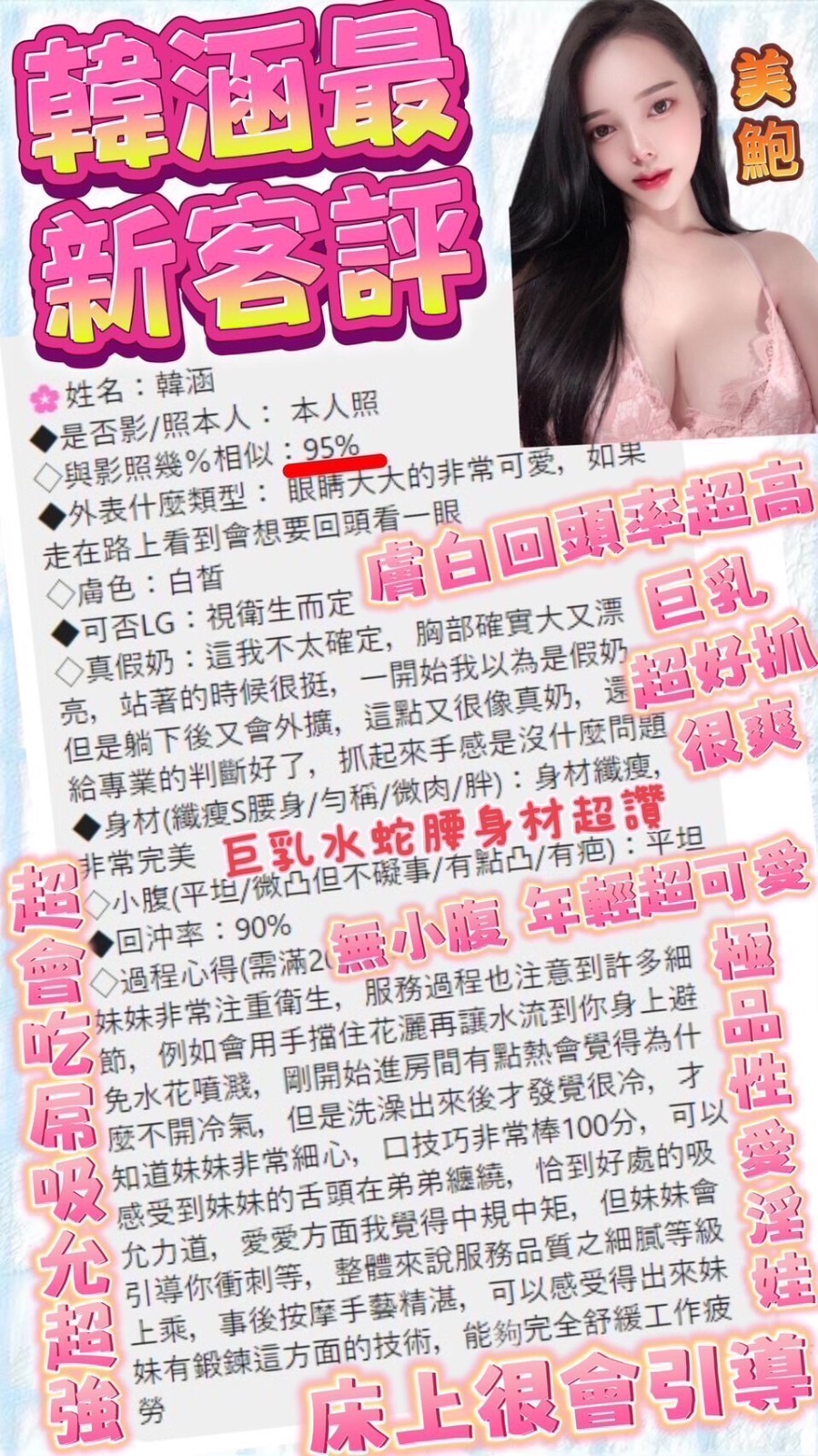 臉蛋甜美可愛,床上淫蕩    Review by 許**
