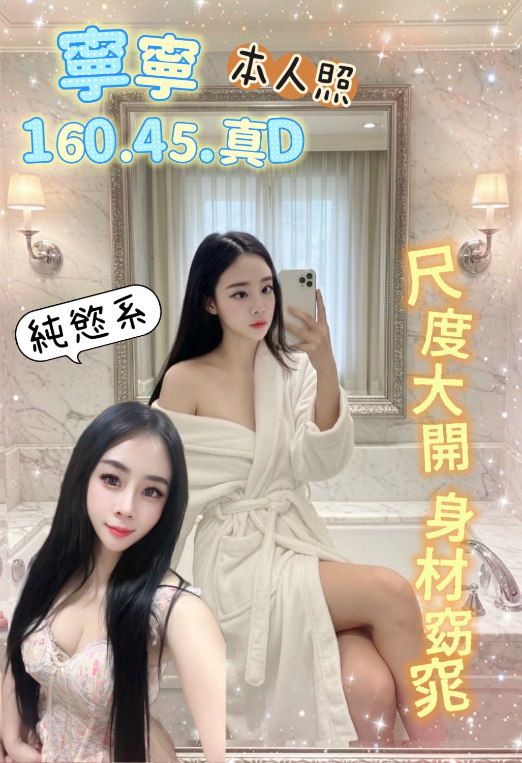 無套吹/甜蜜共浴/69/品鮑/小親親/舌吻/按摩/奶炮/水中蕭/胸推/屁推/絲襪(自備/情趣用品(自備