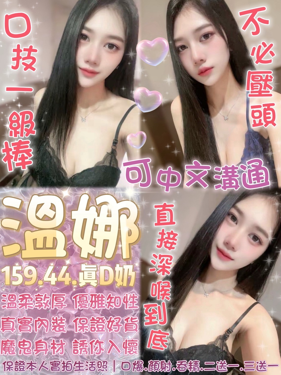 無套吹 共浴 親嘴 品鮑 69 按摩 胸推 屁推 奶炮 艷舞 情趣用品 自慰秀 絲襪(客自備